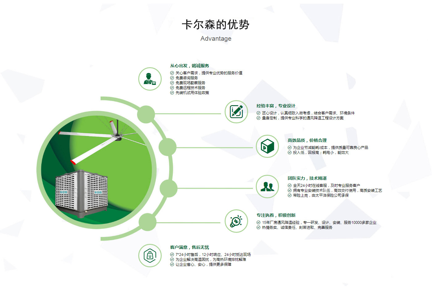 ??晉江市卡爾森機電設備有限公司是一家集設計、制作、銷售、安裝工業(yè)通風設備、中央空調(diào)、節(jié)能環(huán)保空調(diào)、脈沖除塵設備、環(huán)境凈化工程、等環(huán)保工程企業(yè)。并提供環(huán)境影響評價、環(huán)保工程總承包、環(huán)保工程設計、環(huán)保工程運營、環(huán)保工程成套設備等一站式服務。公司一直誠心服務于工業(yè)廠房的通風設施,我們的產(chǎn)品:“品種齊全、質(zhì)量優(yōu)越”。根據(jù)客戶的需求精心設計,高質(zhì)量的制造,力求使每個產(chǎn)品都達到合理耐用、節(jié)能環(huán)保。科學的設計和精美高品質(zhì)的產(chǎn)品,完善的服務系統(tǒng),加強售前、售中、售后服務,對顧客在使用商品中出現(xiàn)的各種問題及時解決,使顧客無后顧之憂。產(chǎn)品廣泛適用于各類型制造業(yè)、機械類、五金冶煉、食品、化工、電子、紡織、噴涂、娛樂以及服務等場所。我們秉承“質(zhì)理過關(guān)、價格合理、交期準時、服務周到”而受到新老客戶的好評和信賴。我們堅持“客戶至上、質(zhì)量上乘”為宗旨,努力工作,為您換來潔凈美好的明天。卡爾森愿以過硬的質(zhì)量,良好的信譽同各界朋友一起開創(chuàng)更加輝煌的未來。